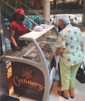 On International Happiness Day, Saturday 20th March 2021, The Falls at Westmall treated 600 patrons with a complimentary novelty bar from Creamery Novelties. In the first installment of a four-week long campaign, shoppers were surprised with Choco-Bar, Milkee, Lollee, Creamee and Ice Cream Sandwich. This initiative indeed added a sprinkle of happiness to shoppers!